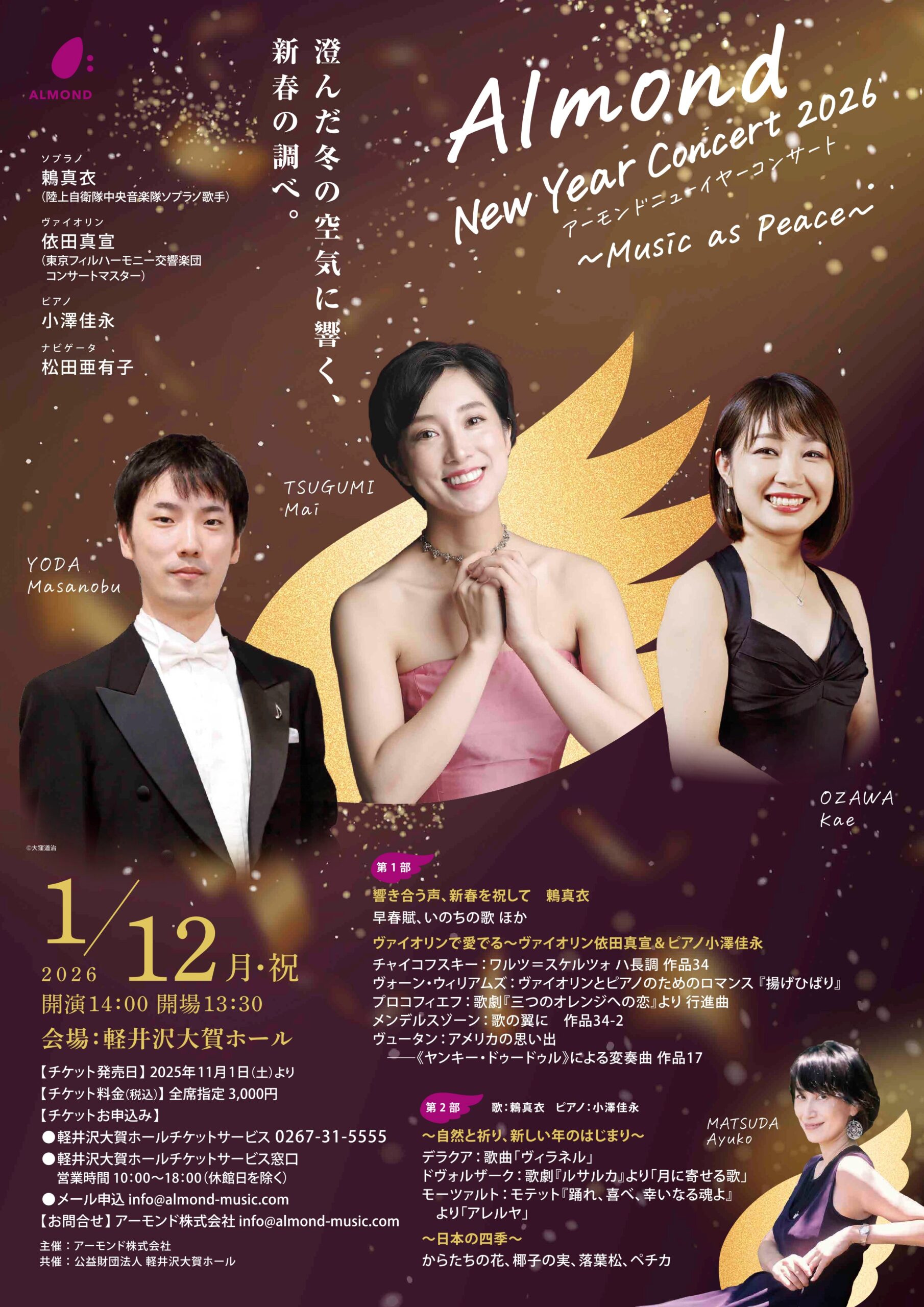 済んだ冬の空気に響く、新春の調べ。 新たな年のはじまりを音楽とともに祝う「Almond New Year Concert 2026~Music as Peace…