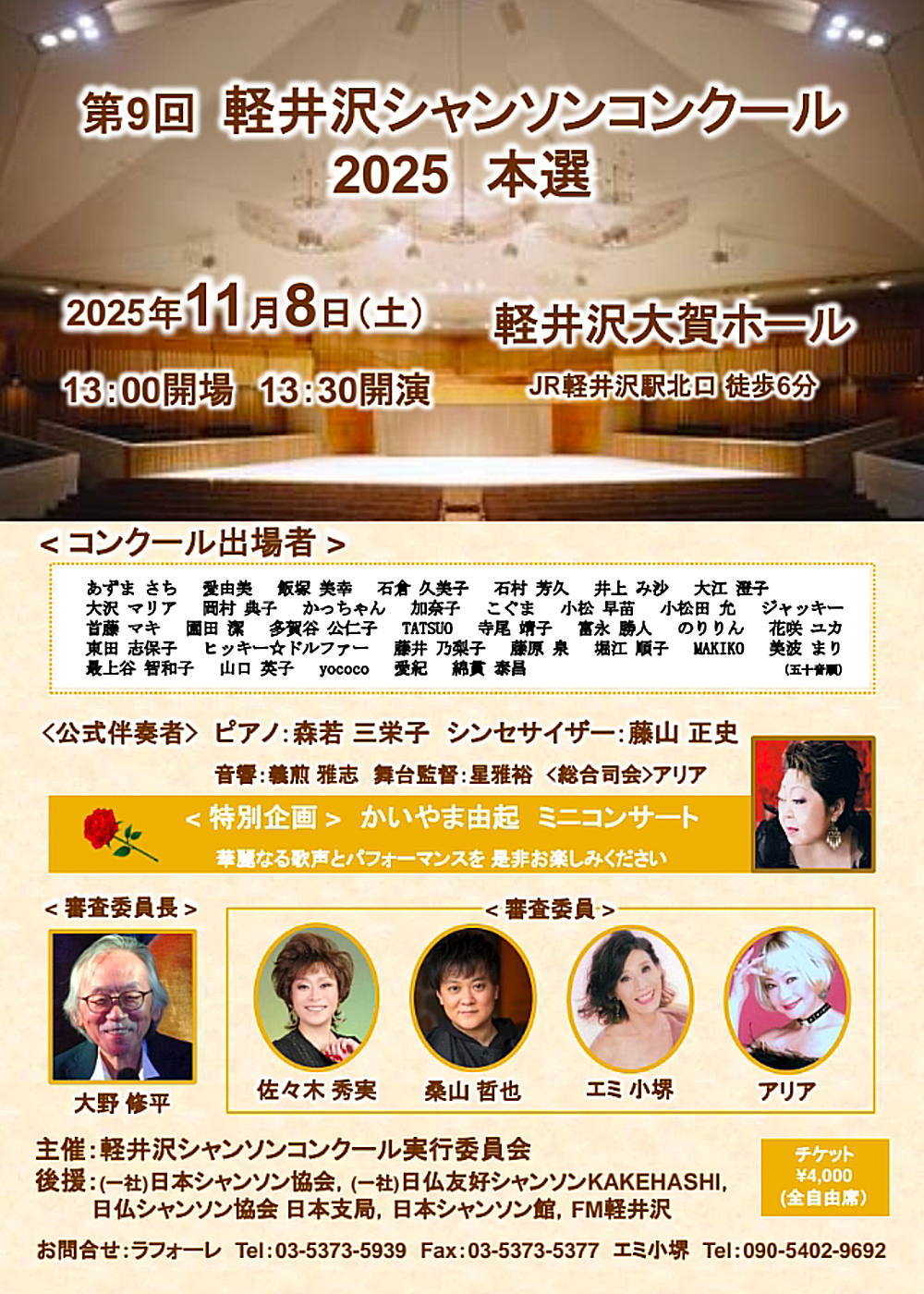 2025-11-08 シャンソン シャンソン 2025.11.8(土) 開場13:00開演13:30 第9回 軽井沢シャンソンコンクール 第9回 軽井沢シャンソンコンクール 11月 8日 第9回 軽井沢シャンソンコンクール