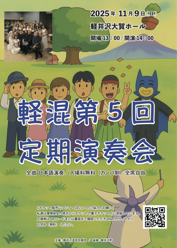 08:00 - 17:00 コーラス コーラス 2025.11.9(日) 開場13:00開演14:00 第5回軽井沢混声合唱団定期演奏会 コーラス コーラス 2025.11.9(日) 開場13:00開演14:00 第5回軽井沢混声合唱団定期演奏会 11月 9日 @ 08:00 - 17:00 第5回軽井沢混声合唱団定期演奏会