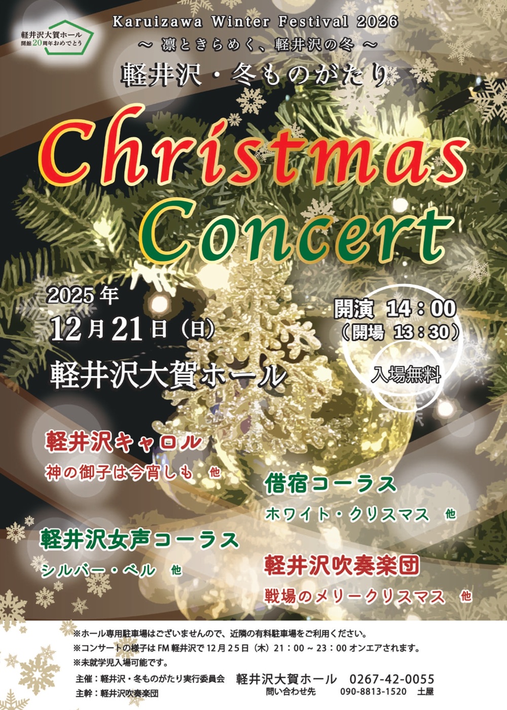 2025-12-21 その他 その他 2025.12.21(日) 開場13:30開演14:00 軽井沢・冬ものがたりクリスマスコンサート 軽井沢・冬ものがたりクリスマスコンサート 12月 21日 軽井沢・冬ものがたりクリスマスコンサート