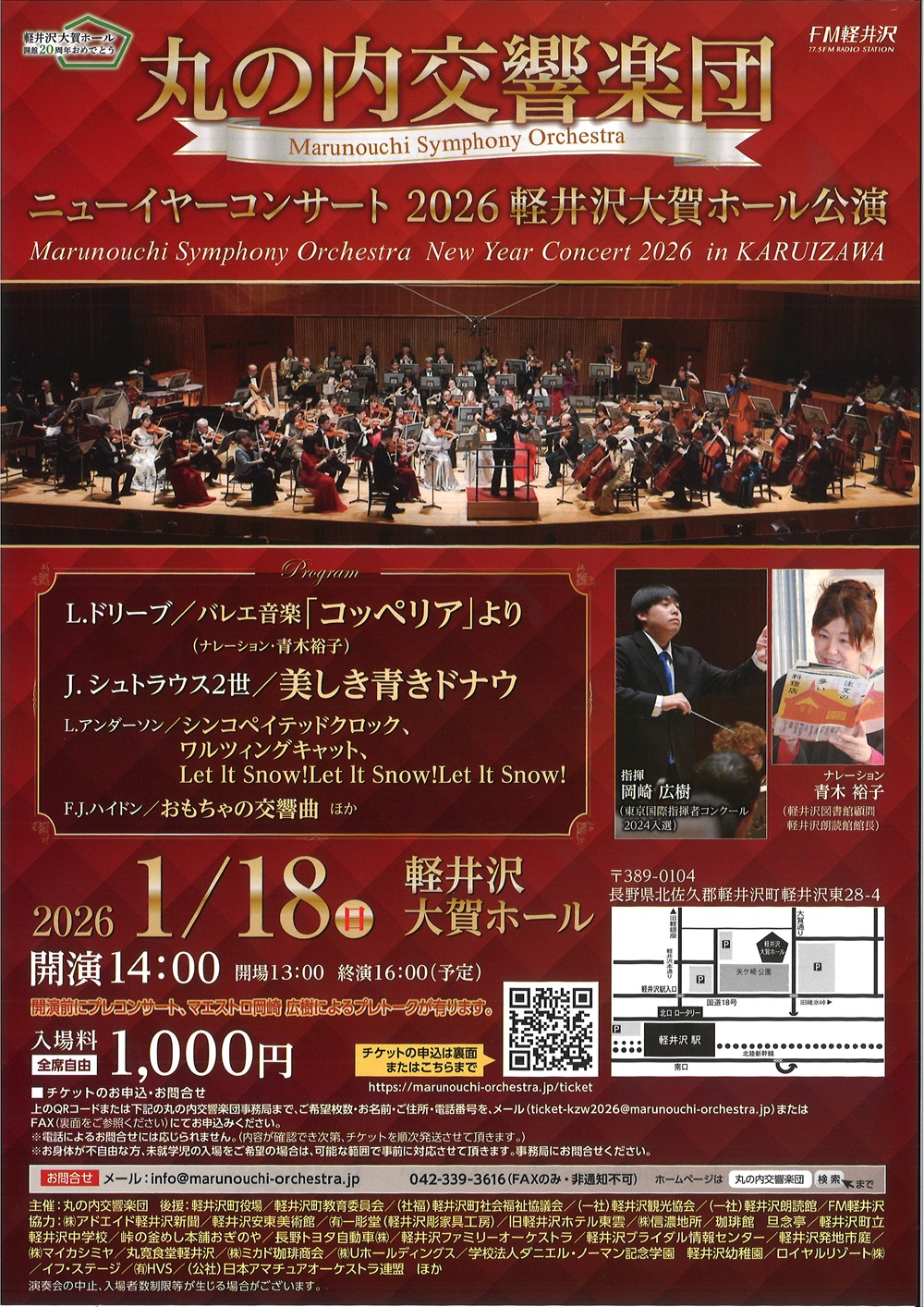 08:00 - 17:00 クラシック クラシック 2026.1.18(日) 開場13:00開演14:00 丸の内交響楽団ニューイヤーコンサート2026軽井沢大賀ホール公演 クラシック クラシック 2026.1.18(日) 開場13:00開演14:00 丸の内交響楽団ニューイヤーコンサート2026軽井沢大賀ホール公演 2026年 1月 18日 @ 08:00 - 17:00 丸の内交響楽団ニューイヤーコンサート2026軽井沢大賀ホール公演