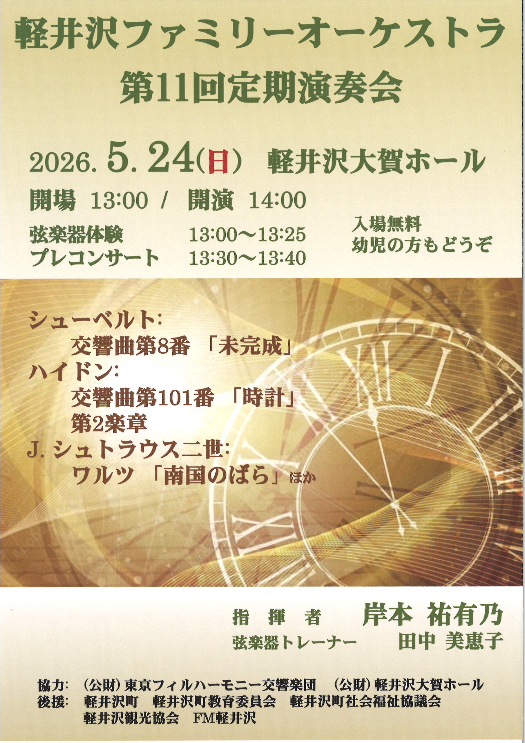 軽井沢ファミリーオーケストラ 第11回定期演奏会のお知らせです!